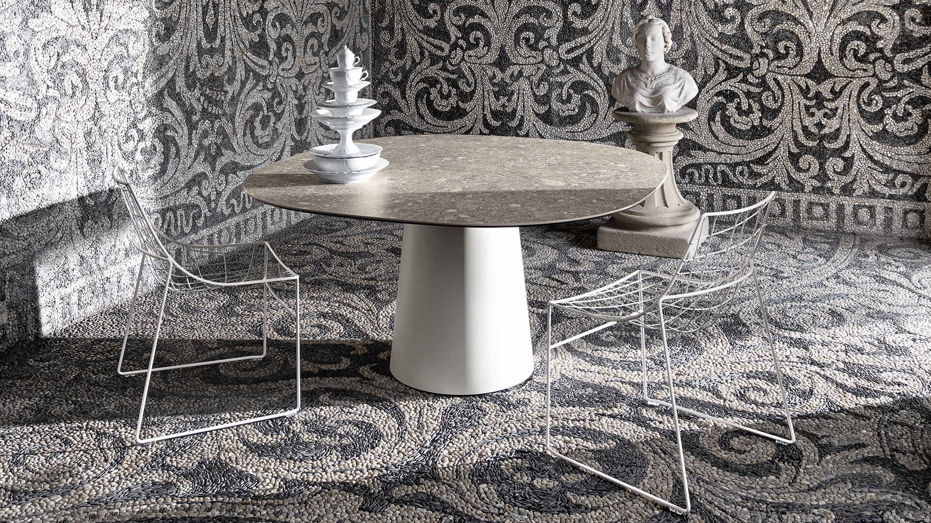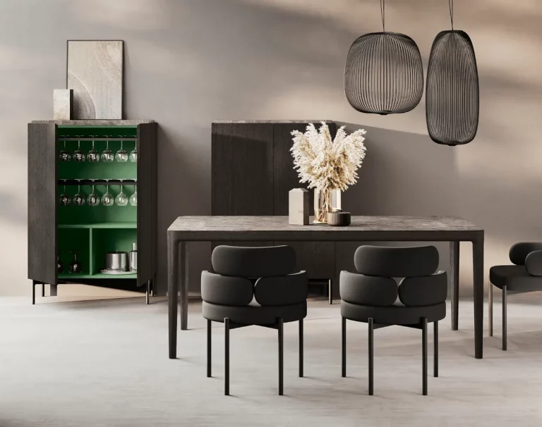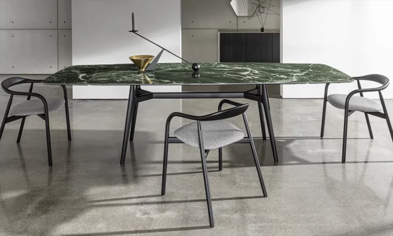 Curved glass and chrome metal profile are joined together to create a single form, able to create different chromatic combinations and types of furniture: from the coffee table to the console. An idea that can satisfy different needs with a unique style for home and contract interiors.